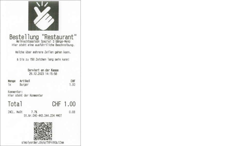 Sie können die Einstellungen für aktive Quittungslayouts am Tisch unter simplyorder.ch/dashboard/settings/recepits ändern.