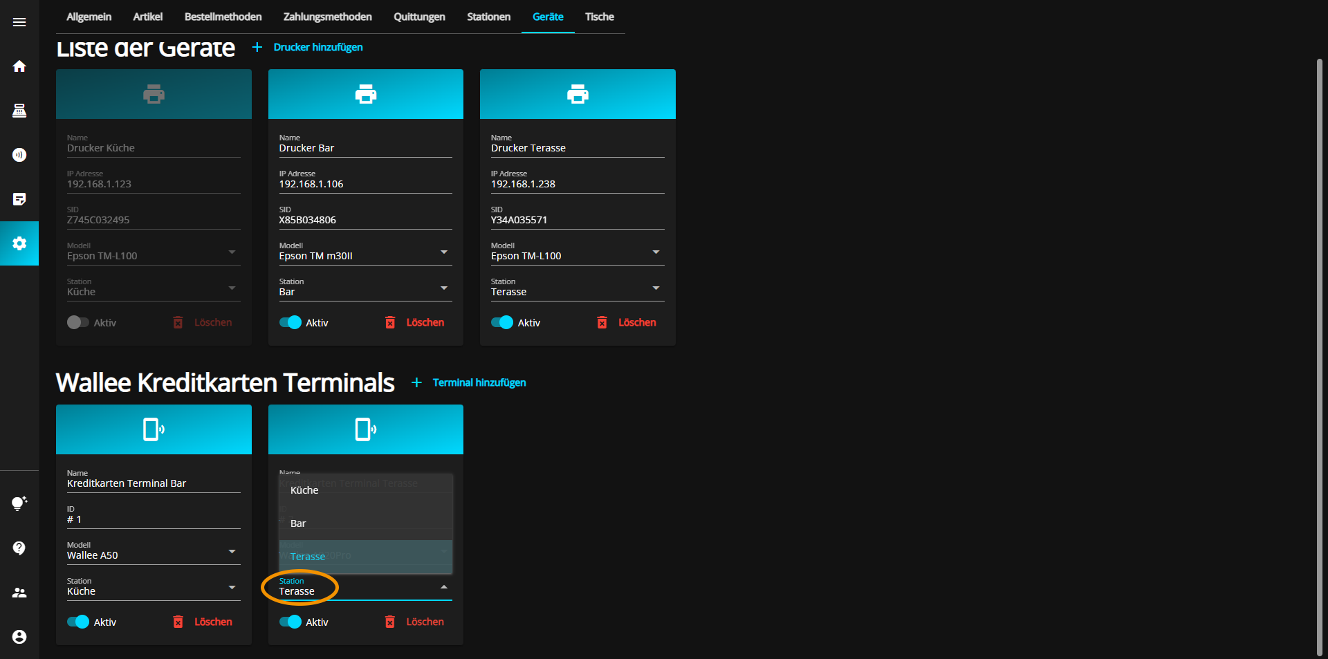 Zu guter letzt muss das Terminal einer verfügbaren Station hinzugefügt werden.