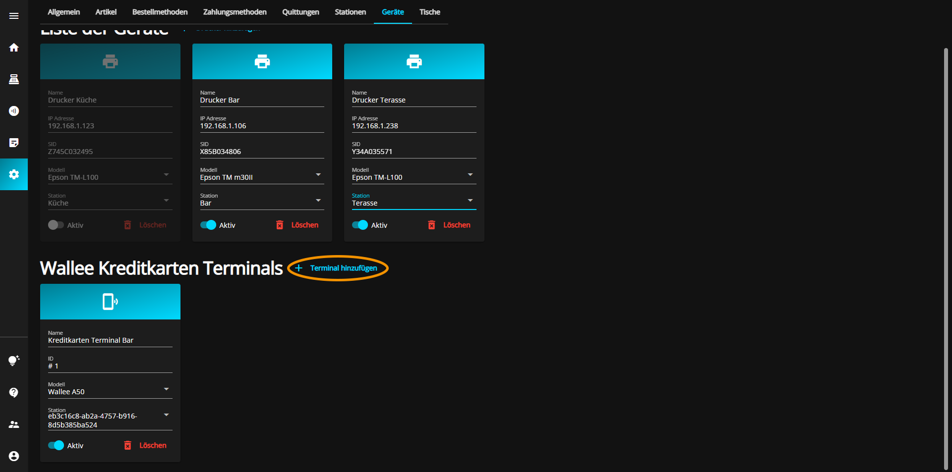 Um einen neues Kreditkarten Terminal hinzuzufügen klicken Sie auf den Knopf "Terminal hinzufügen".