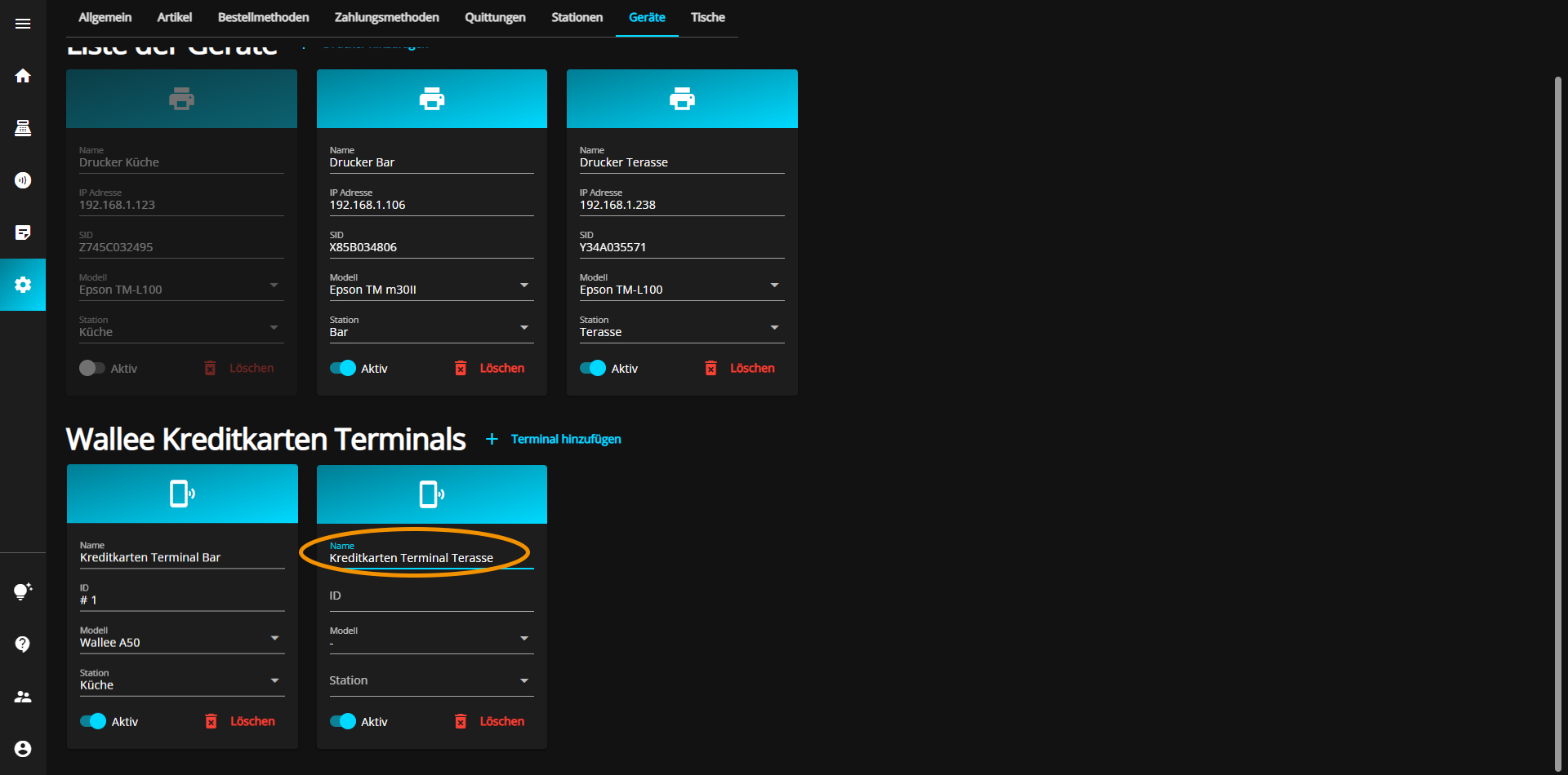 Zunächst können Sie dem neuen Terminal einen passenden Namen geben, indem Sie in das Textfeld "Name" klicken und dort den gewünschten Namen eintragen.