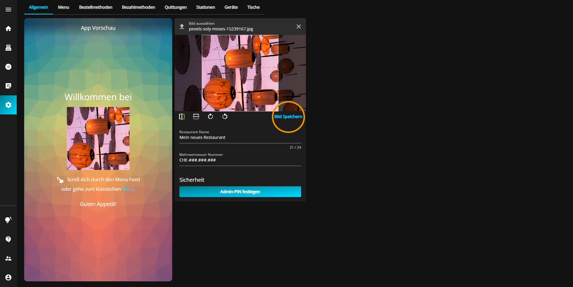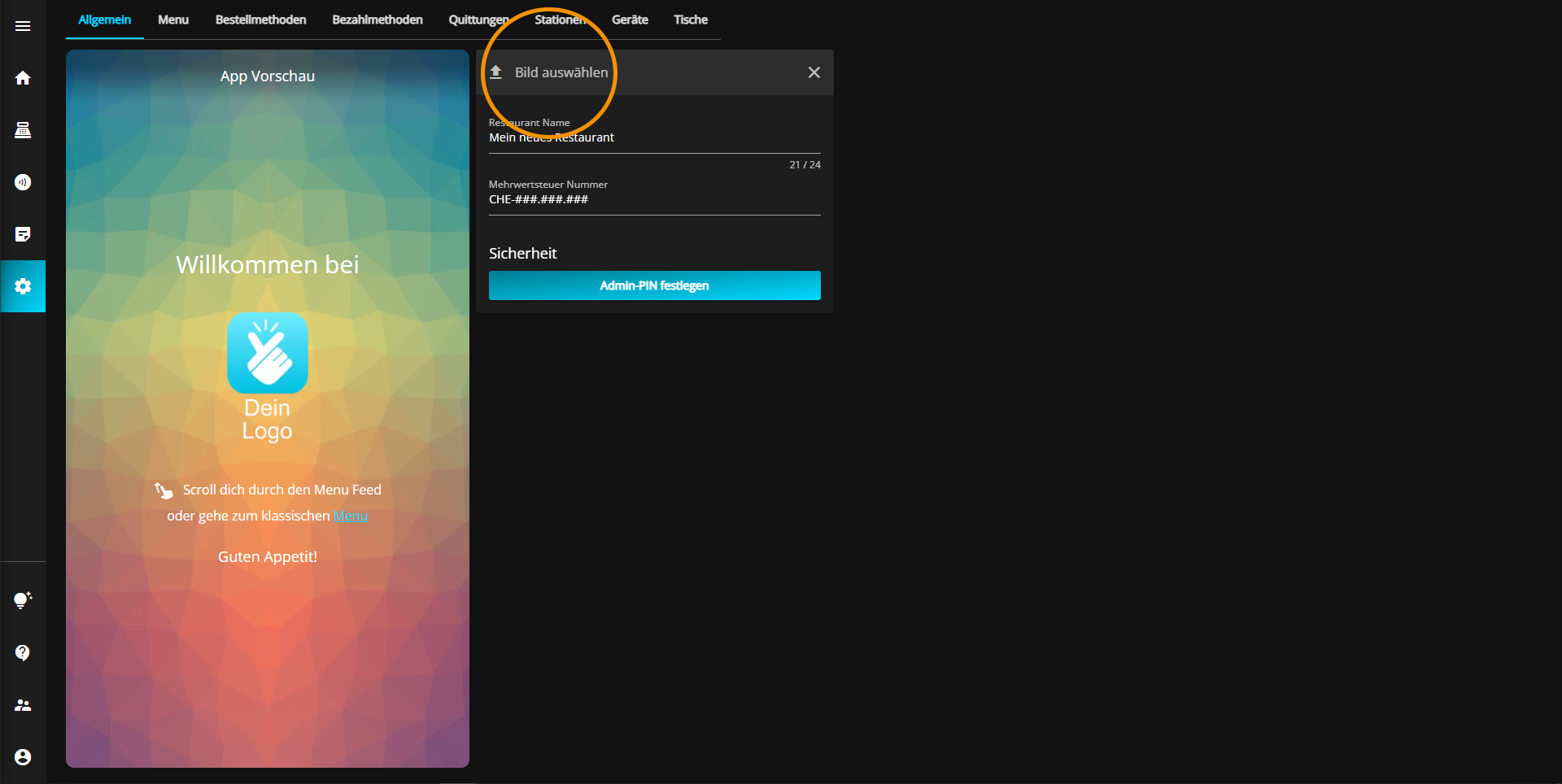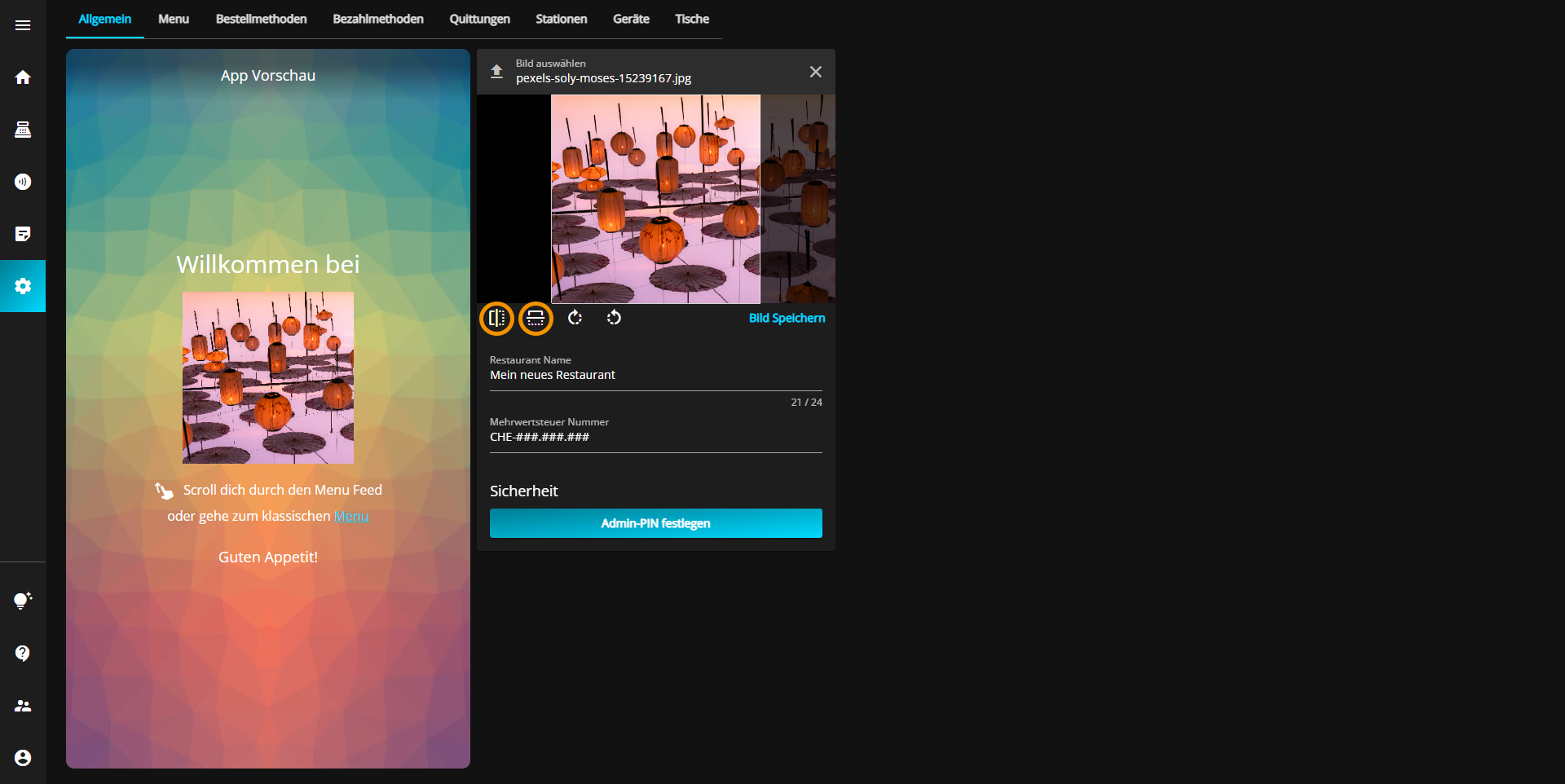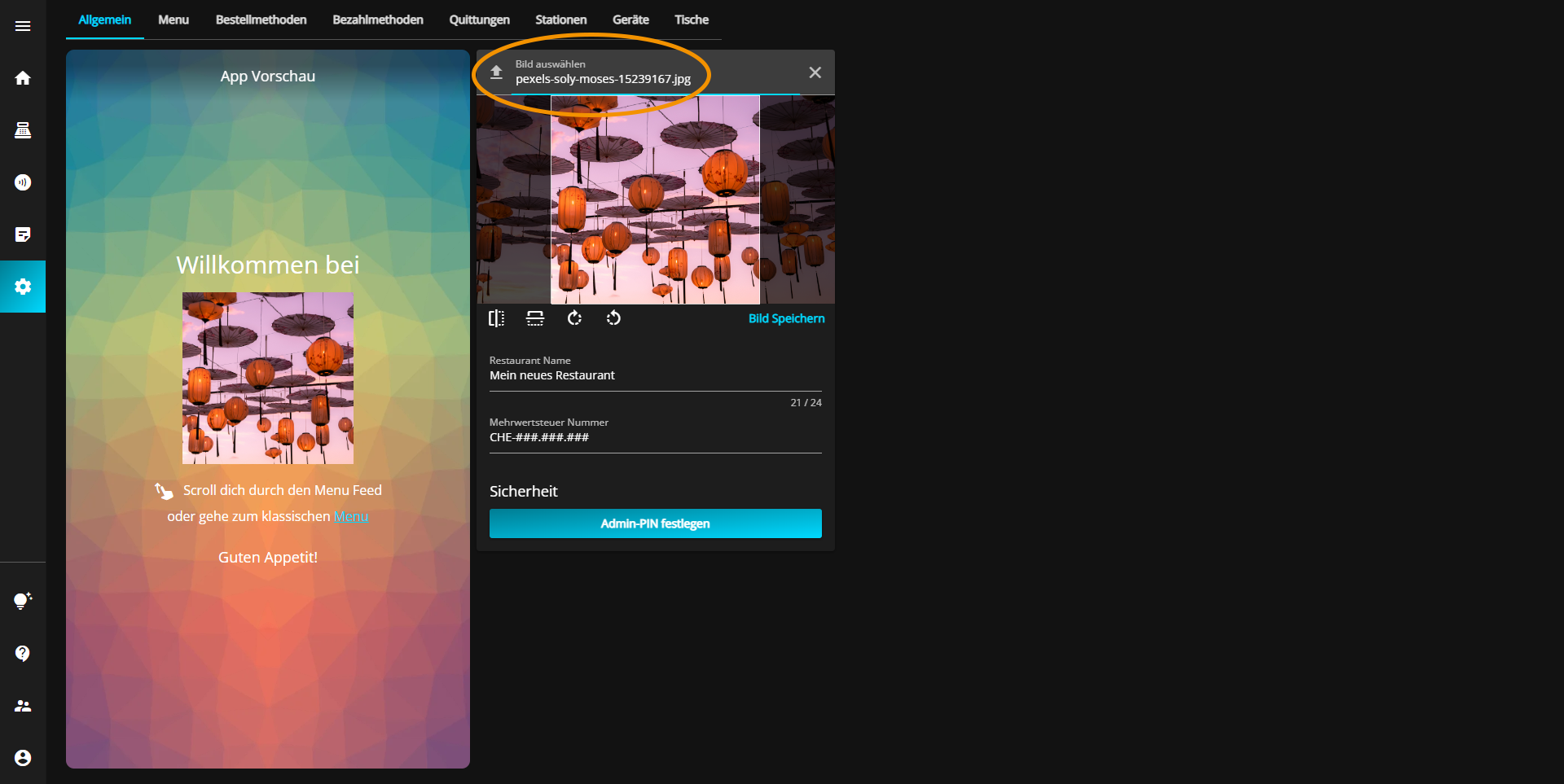 You can add an image for your restaurant at simplyorder.ch/dashboard/settings or change the already existing one.