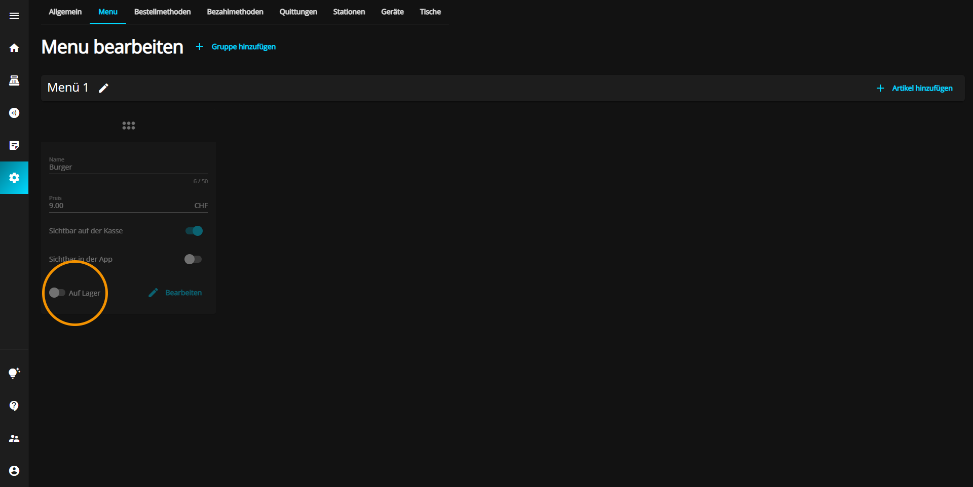 Last but not least, you can set whether the item is in stock by clicking on the blue button at the bottom left of the item depending on the availability of the product.