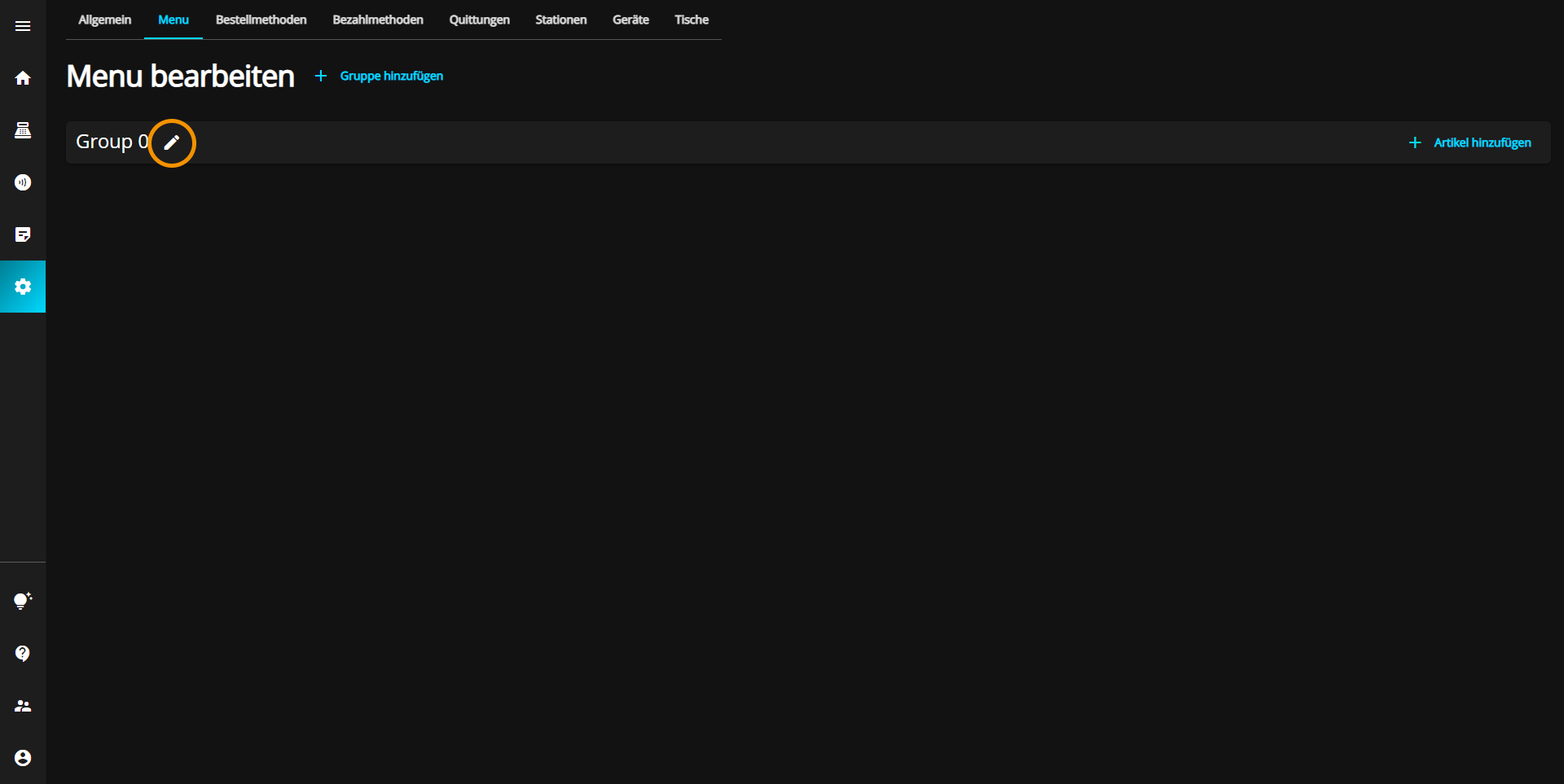 A new menu group appears. You can view and edit more options of your menu group by clicking on the pencil located directly to the right of the new group.