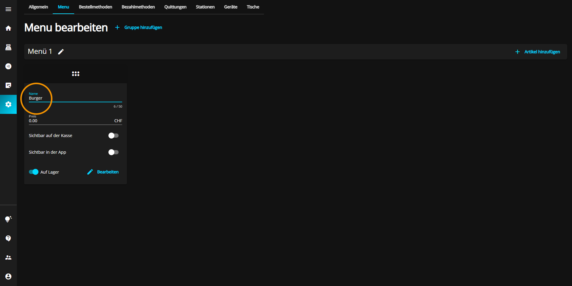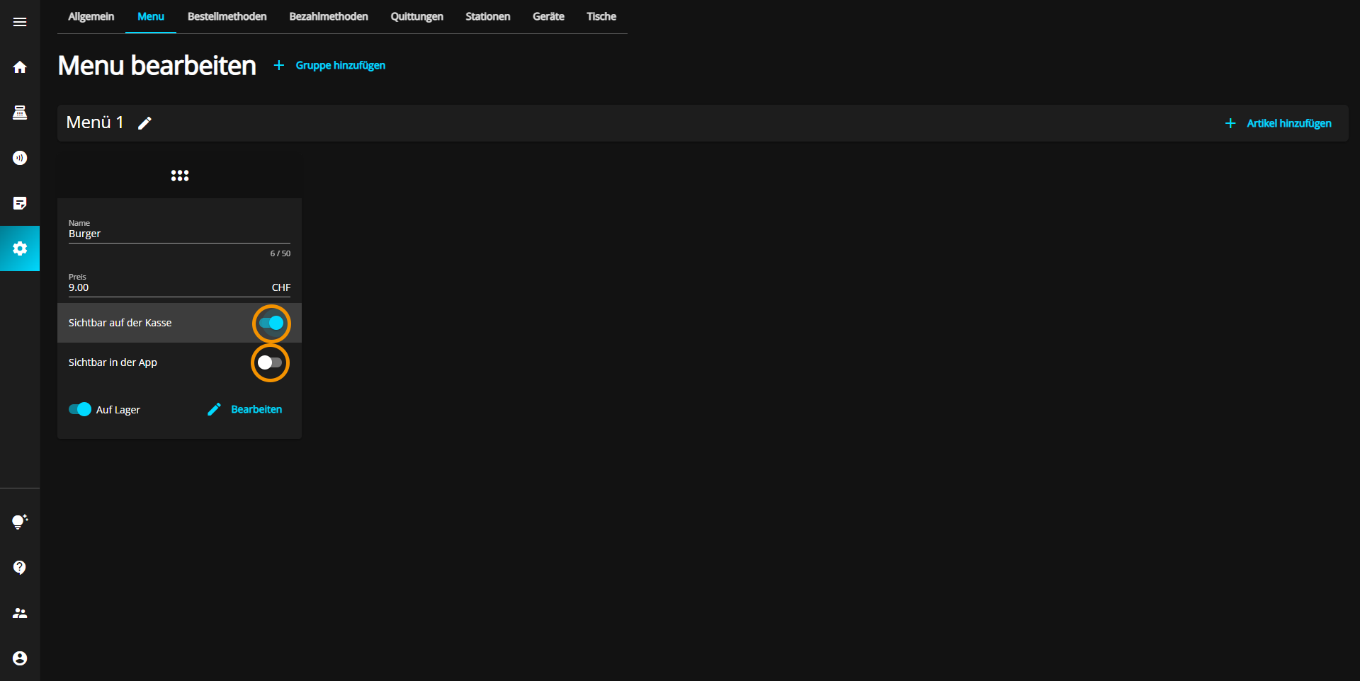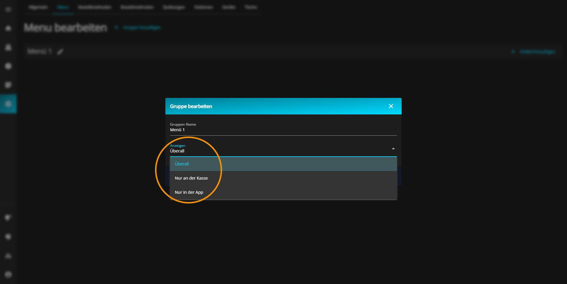 After you have entered the name, you still have to select whether the menu group should be visible exclusively on the cash register, only in the app or both on the cash register and in the app.
