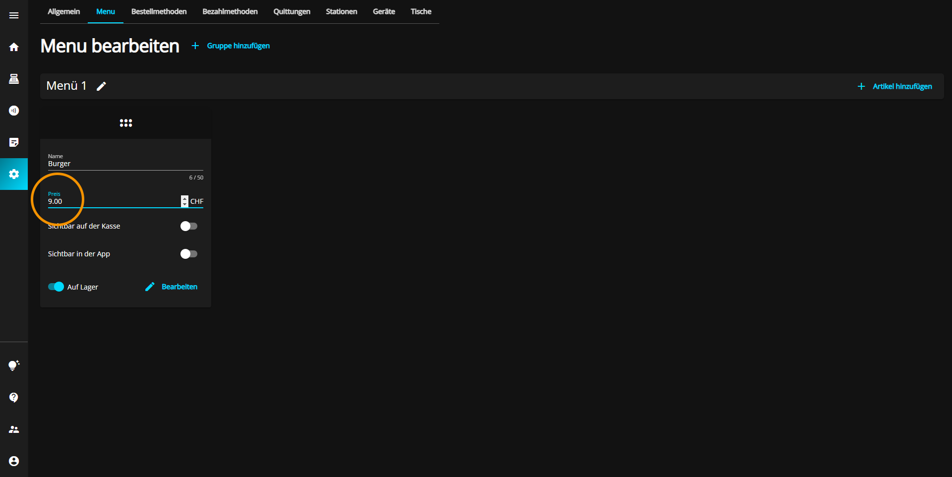 Furthermore, you can decide whether the selected product should be visible on the cash register, in the app or on both devices.