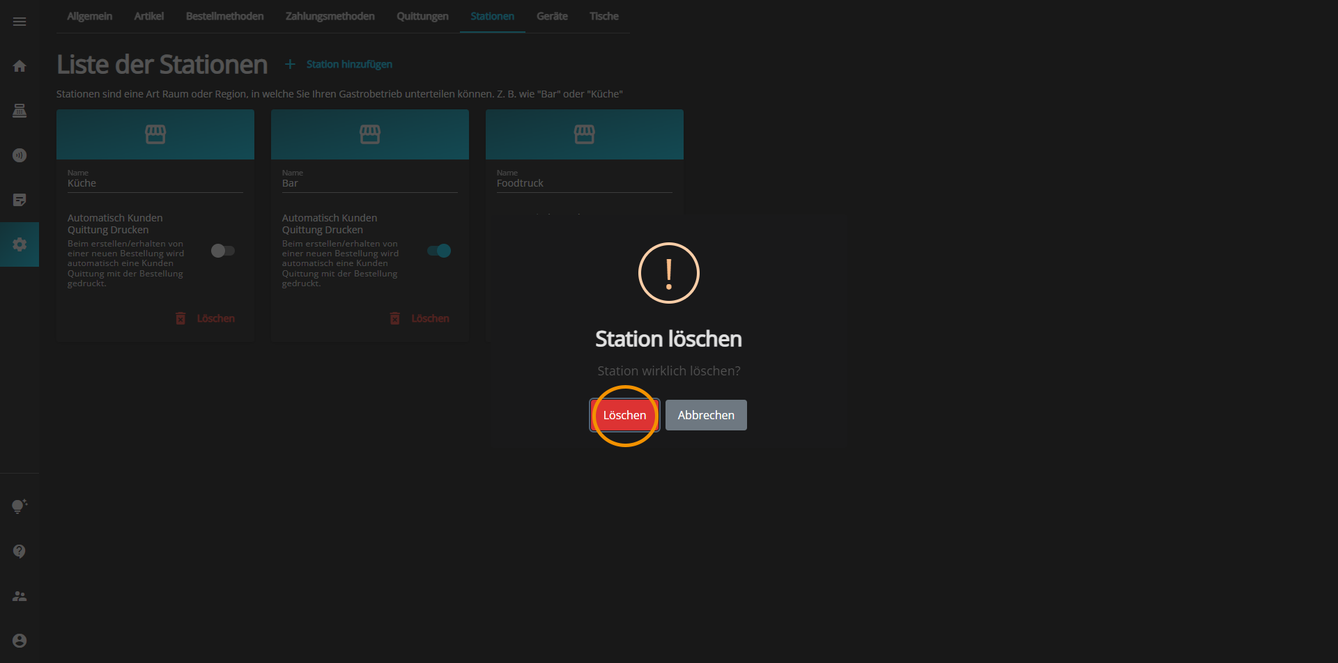 You can delete stations at simplyorder.ch/dashboard/settings/stations