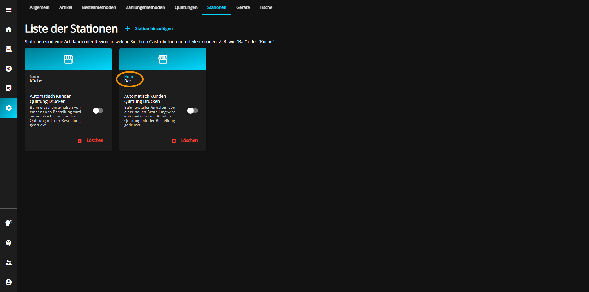 You can change the settings for the various stations at simplyorder.ch/dashboard/settings/stations